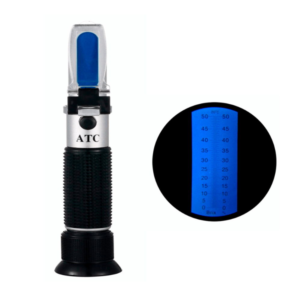 El refractómetro con rango de medición de 0 a 50% te permitirá controlar con exactitud soluciones concentradas de azúcares o sólidos solubles.